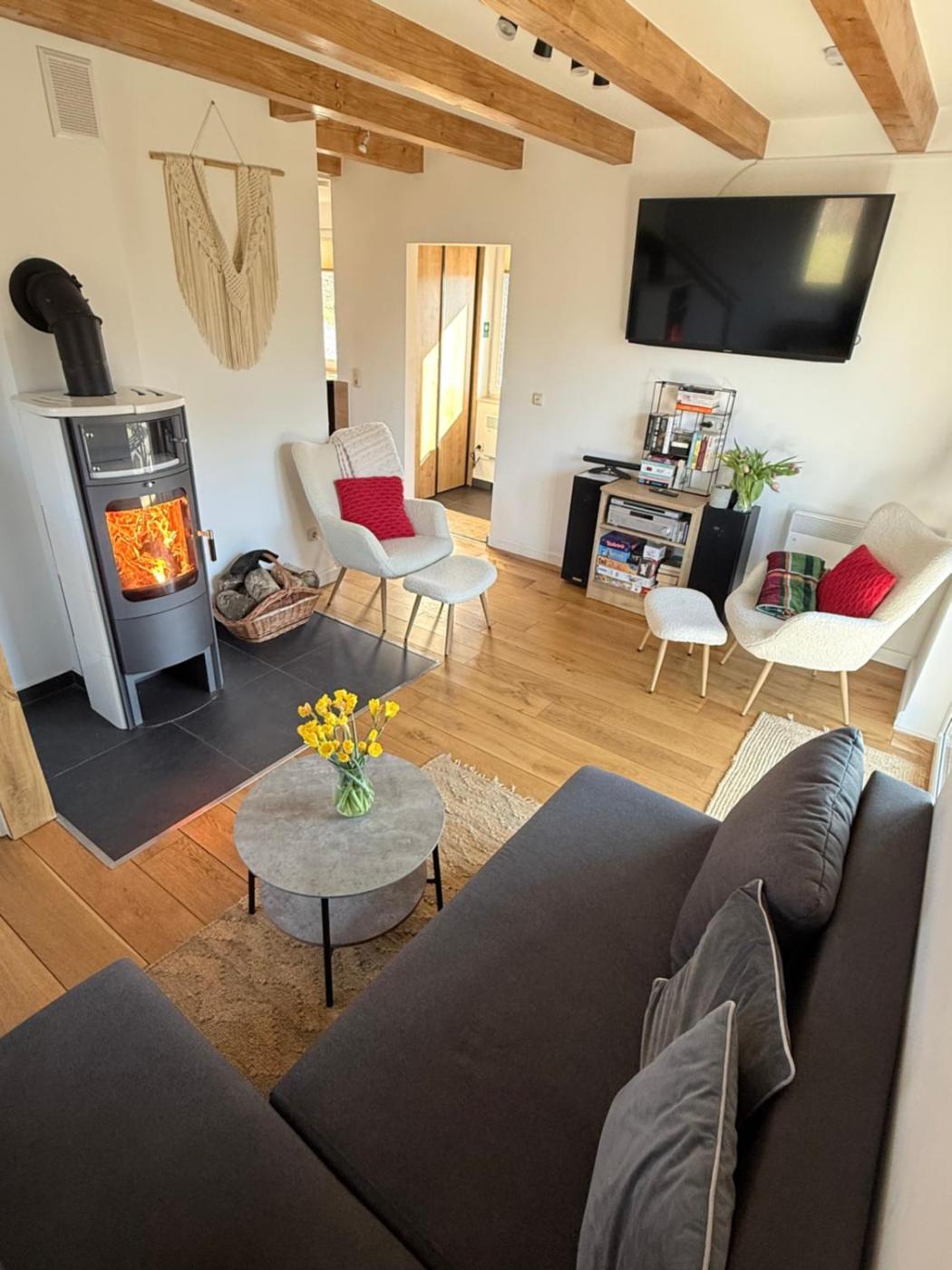 Apartament z 2 sypialniami. The fireplace is a top feature of this apartment. This spacious apartment includes 1 living room, 2 separate bedrooms and 2 bathrooms with a bath and a shower. Guests will find a stovetop, a refrigerator, a dishwasher and kitchenware in the fully equipped kitchen. The apartment also features a barbecue. Boasting a terrace with garden views, this apartment also offers a coffee machine and a flat-screen TV. The unit has 4 beds. Apartament - 8 osobowy. Powierzchnia pokoju ok.: 75 mkw.