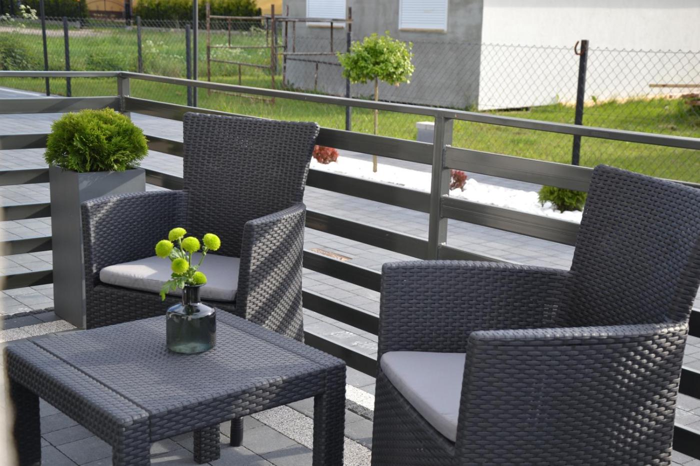 Apartament z tarasem. Boasting a private entrance, this air-conditioned apartment comes with 1 living room, 1 separate bedroom and 1 bathroom with a shower and a hairdryer. Guests will find a stovetop, a refrigerator, a dishwasher and kitchenware in the fully equipped kitchen. The apartment also includes a barbecue. Featuring a terrace with garden views, this apartment also features a washing machine and a flat-screen TV with cable channels. The unit has 2 beds. Apartament - 4 osobowy. Powierzchnia pokoju ok.: 46 mkw. ;