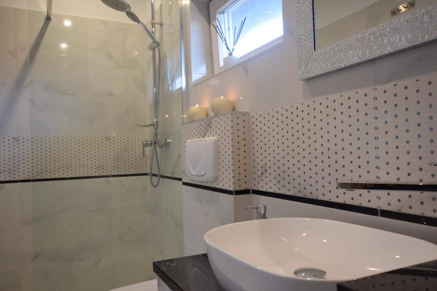 Domek. This chalets standout feature is the fireplace. Featuring a private entrance, this air-conditioned chalet is comprised of 1 living room, 2 separate bedrooms and 1 bathroom with a shower and a hairdryer. Guests will find a stovetop, a refrigerator, kitchenware and an oven in the well-fitted kitchenette. The chalet also has a barbecue. Boasting a terrace with garden views, this chalet also offers a washing machine and a flat-screen TV with satellite channels. The unit offers 4 beds. Domek - 6 osobowy. Powierzchnia pokoju ok.: 40 mkw.